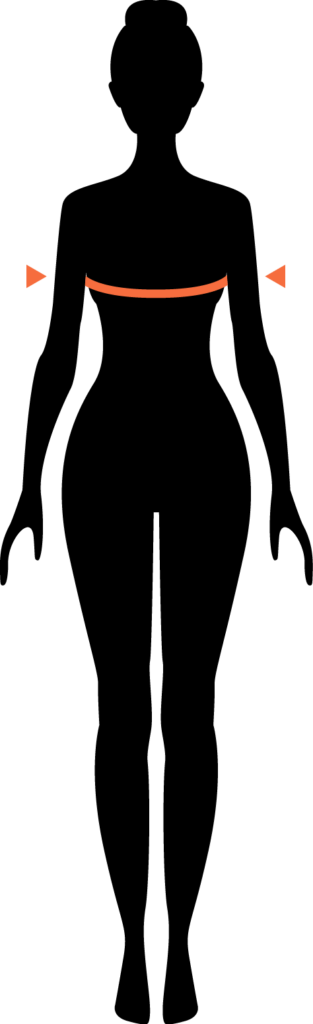 • Circonferenza seno : Posiziona un metro a nastro all’altezza del punto più abbondante del petto. Assicurati che il metro sia parallelo al suolo. Alza la testa, stringi il metro respirando normalmente.