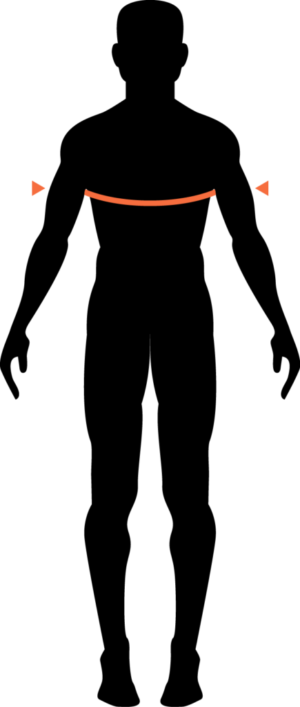 • Circonferenza petto : Posiziona un metro a nastro all’altezza del petto. Assicurati che il metro sia parallelo al suolo. Alza la testa, stringi il metro respirando normalmente.